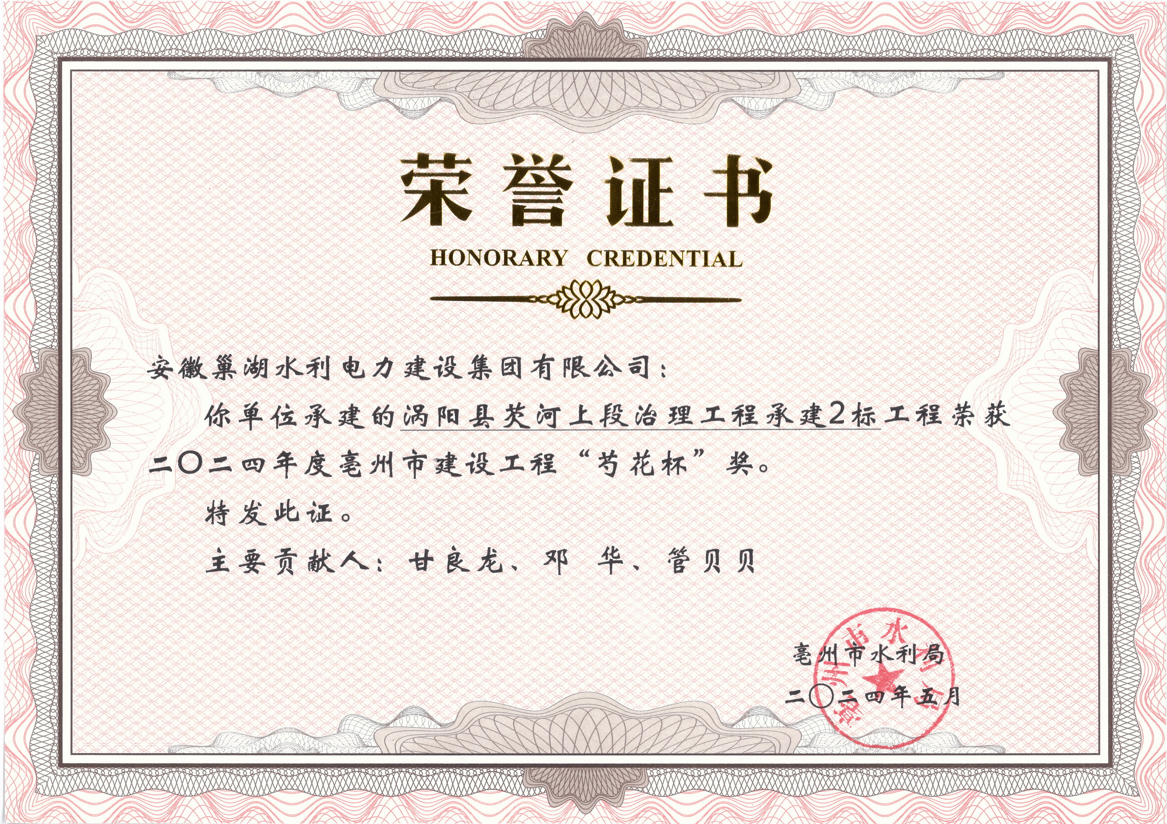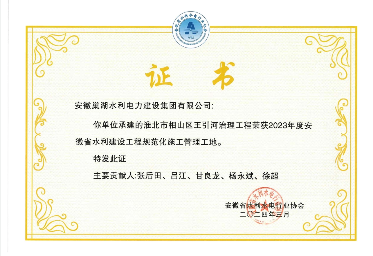2024年度“禹王杯“榮譽(yù)證書
