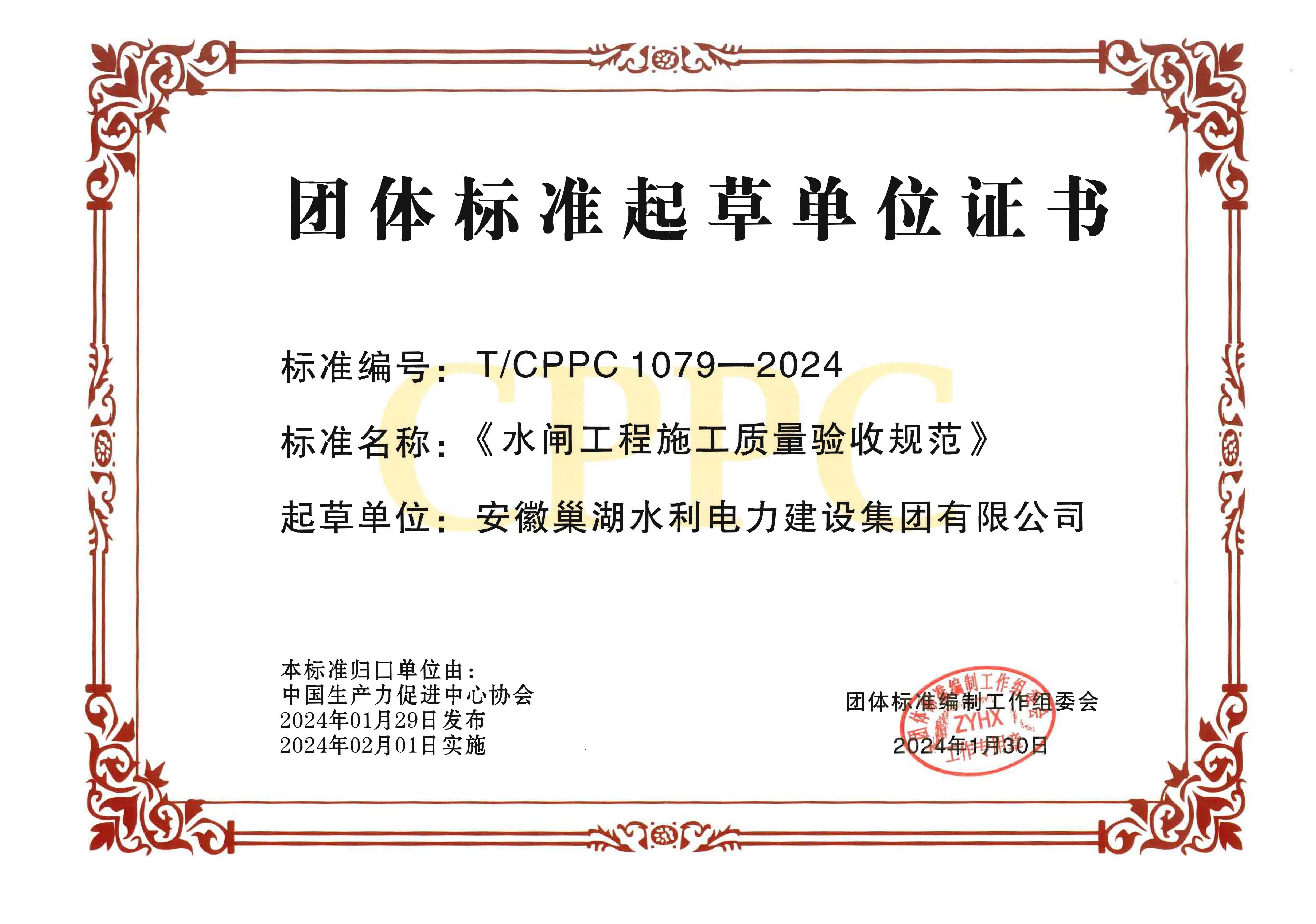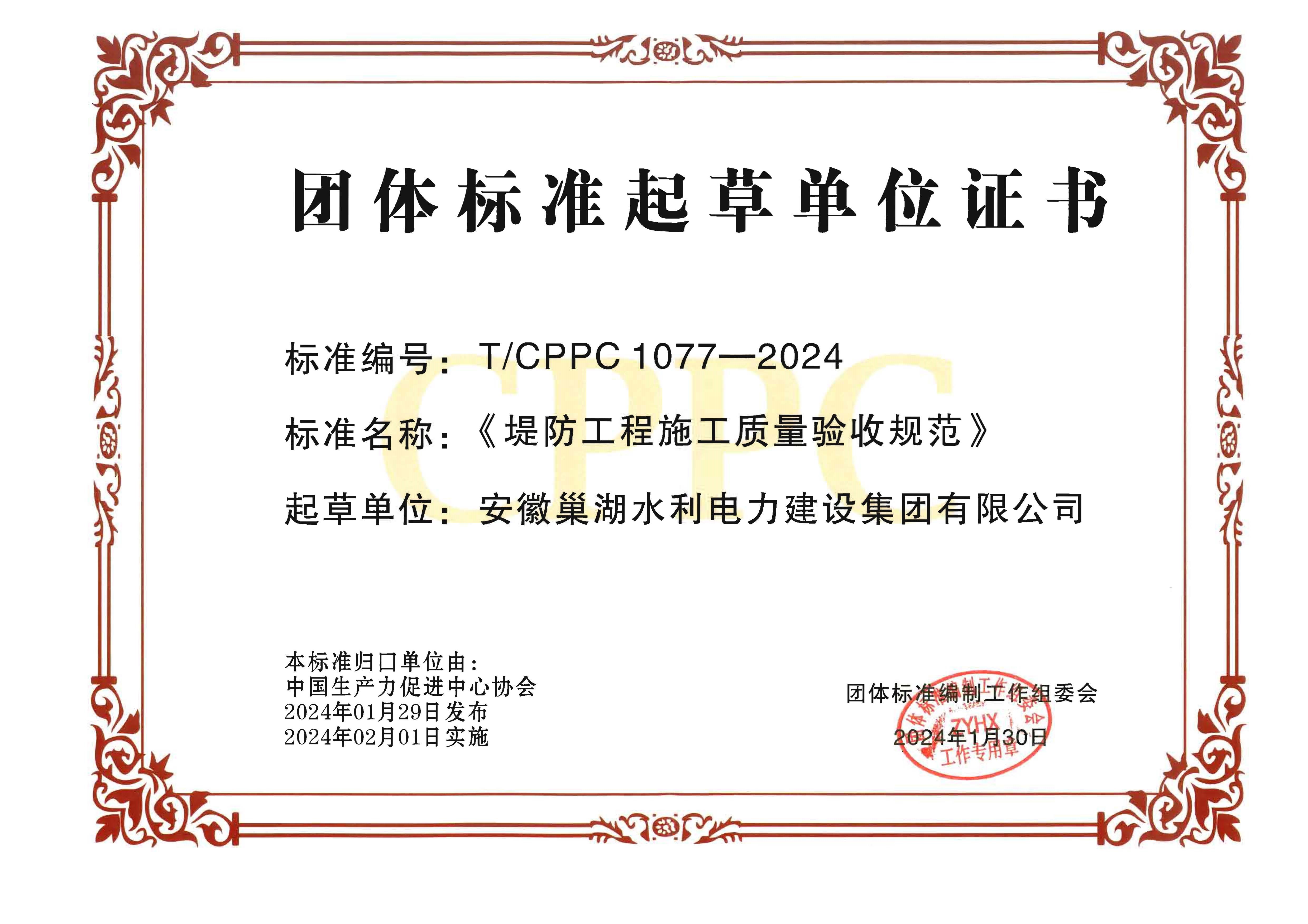 2024年度團(tuán)體標(biāo)準(zhǔn)起草單位證書