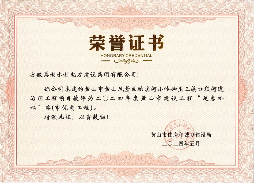 “迎客松杯”榮譽(yù)證書
