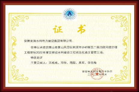 “規范化施工管理工地”證書