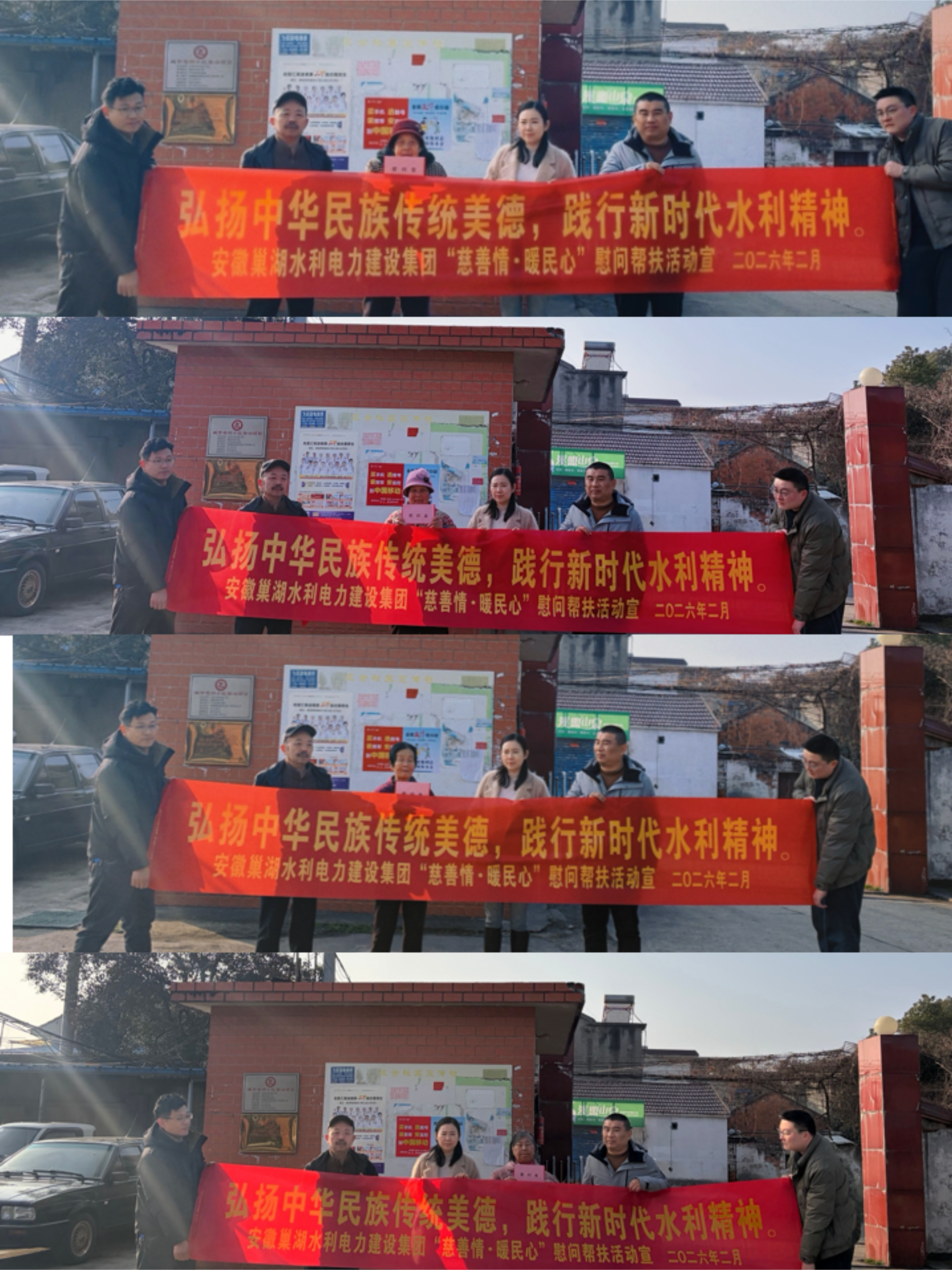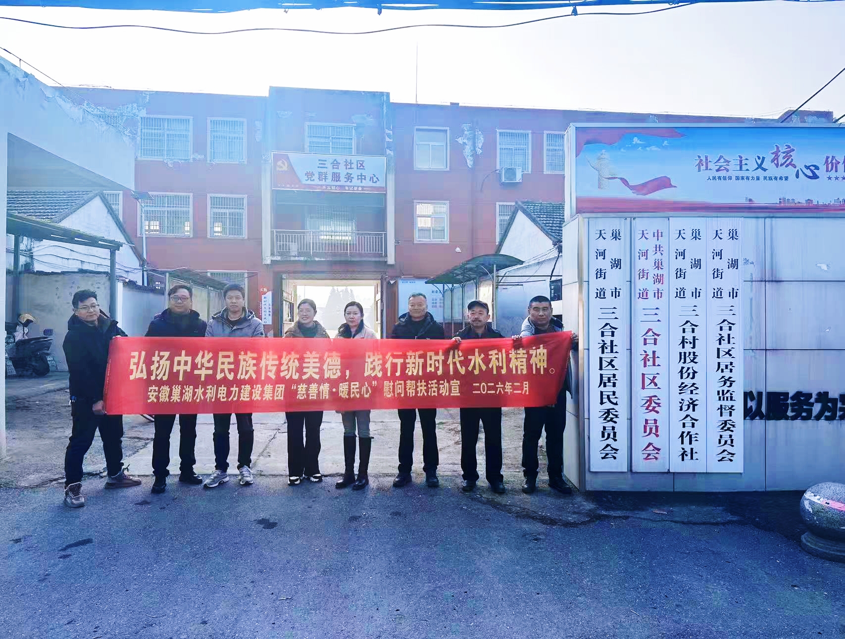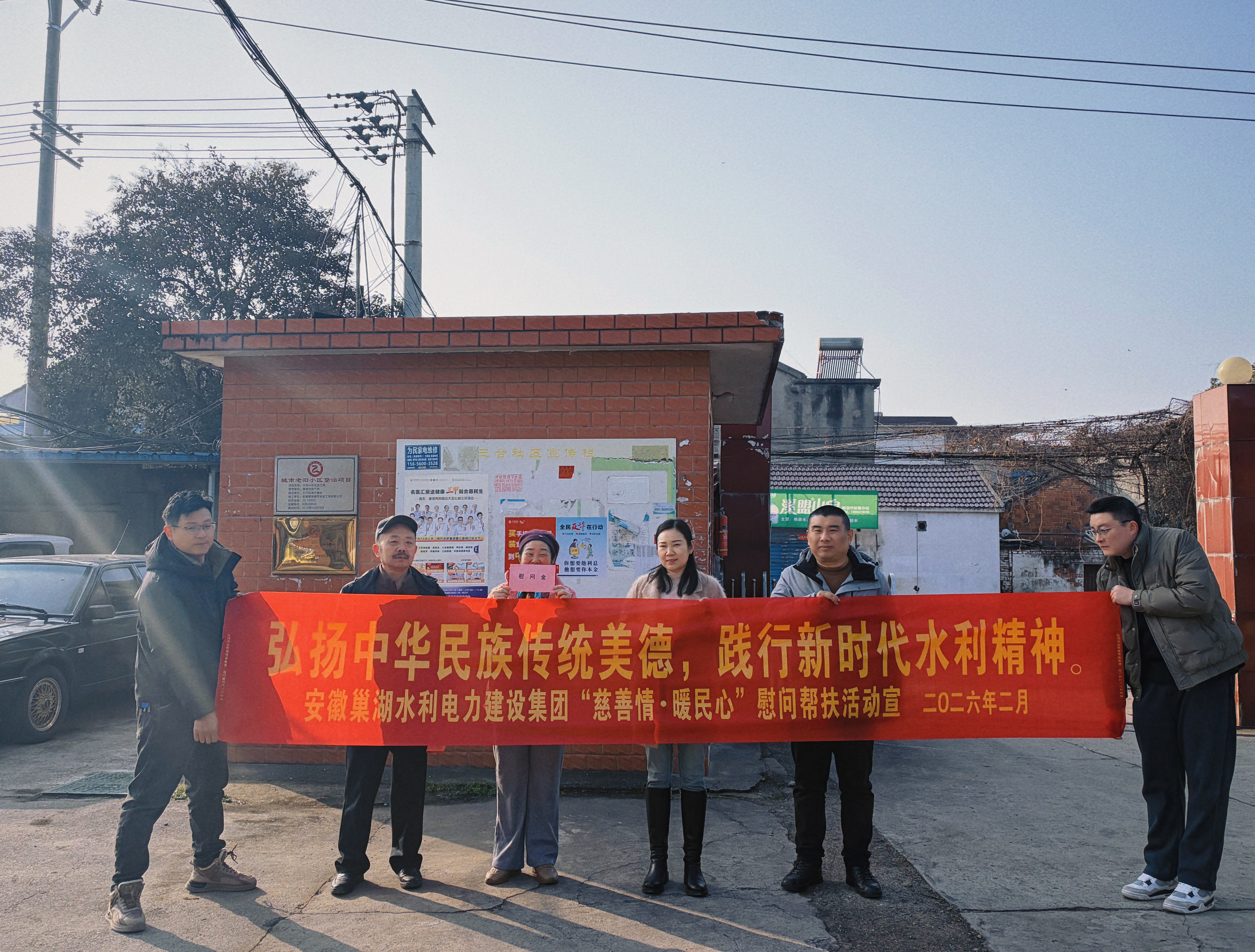春臨大地暖,慰問傳真情。2026 年 2 月,在新春佳節即將來臨之際,安徽巢湖水利電力建設集團有限公司攜手三合社區,以 “弘揚中華民族傳統美德,踐行新時代水利精神” 為主題,組織開展專項慰問幫扶活動。公司領導帶隊分組走訪慰問了公司退休老員工、老員工家屬及生活困難員工代表,為他們送上慰問金和誠摯的節日祝福,讓寒冬中的水利人感受到 “家” 的溫暖與組織的關懷。